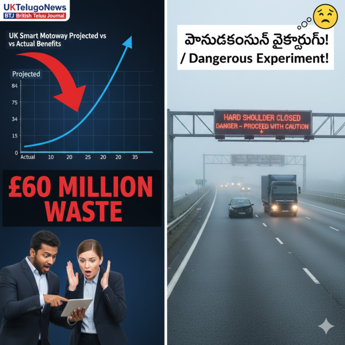 లండన్: బ్రిటన్ (UK) లో ప్రతిష్టాత్మకంగా చేపట్టిన స్మార్ట్ మోటార్‌వేల ప్రాజెక్టు ఘోరంగా విఫలమైందని తాజా అధికారిక నివేదికలు వెల్లడించాయి. ఫిబ్రవరి 2026 నాటి నేషనల్ హైవేస్ ఆడిట్ వివరాల ప్రకారం.. ఈ ప్రాజెక్టుల వల్ల ఆశించిన ఆర్థిక ప్రయోజనాలు కలగకపోగా, ప్రజాధనం విపరీతంగా దుర్వినియోగమైంది. దీనిపై ఆటోమొబైల్ అసోసియేషన్ (AA) తీవ్రంగా స్పందిస్తూ, ఇది సమయం, నిధులు మరియు శ్రమ యొక్క “క్యాటాస్ట్రోఫిక్ వేస్ట్” (భయంకరమైన వృధా) అని అభివర్ణించింది.